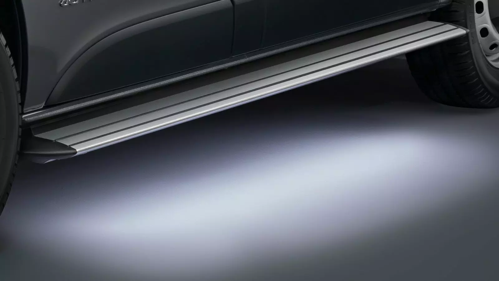 Design-alumiini astinlaudat LED-valaistuksella, VW T6 Transporter lyhyen tai pitkän akselivälin malleihin . Astinlaudoilla autoon astuminen ja poistuminen helpottuvat, minkä lisäksi astinlaudat tarjoavat helmoille suojan lialta ja kiviltä. Astinlaudat valaistu alapuolelta LED-valoin (aktivoituvat ovet aukaistaessa ja lukittaessa). Valmistaja Cobra.