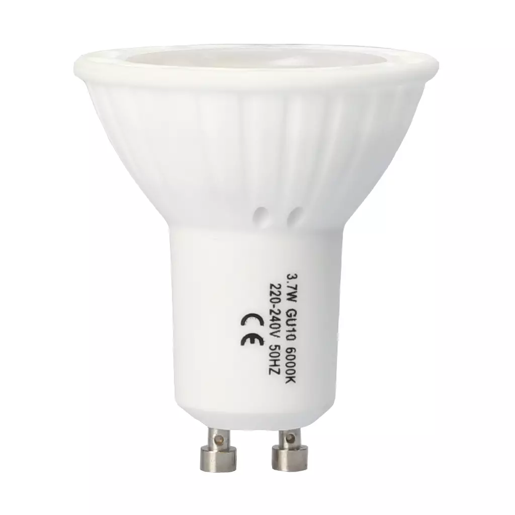 GU10 LED-spotti tuo kotiisi turvallista, raikasta ja ympäristöystävällistä valoa. Se tarjoaa erinomaisen valotehon suhteessa virrankulutukseen. Tämä 3,7W LED-polttimo vastaa n. 30W hehkulampun valotehoa! Testautettu EMC-laboratoriossa.
