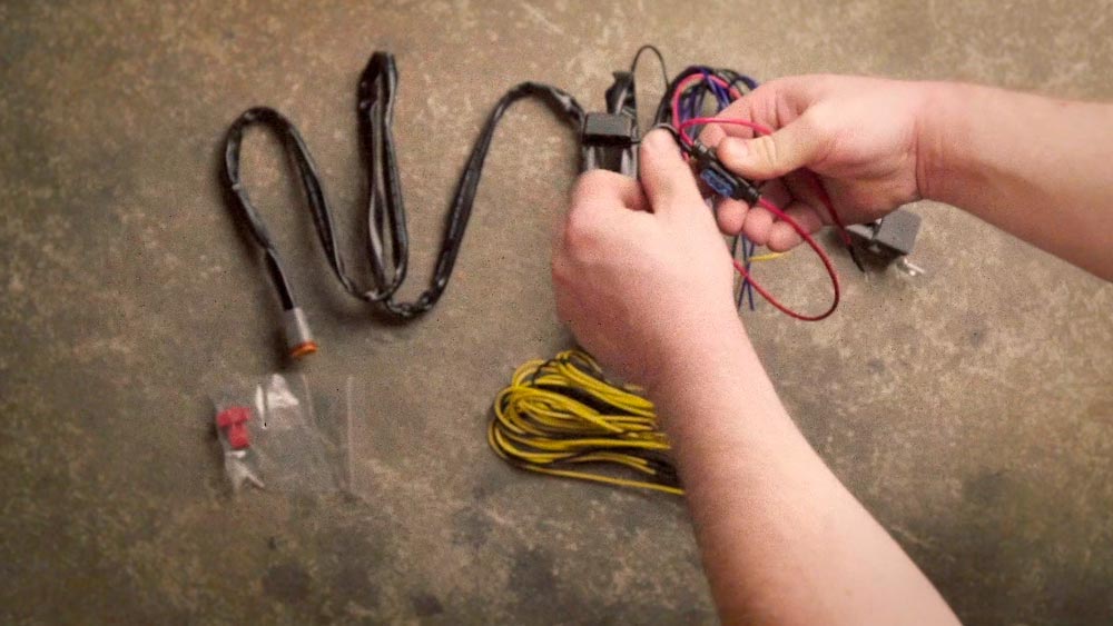 Oikean johdon löydyttyä relejohtosarjan herätejohto kytketään kaukovalon virtajohtoon. Tässä ohjeessa kytkentään käytetään rosvoliitintä, mutta kytkennän voi toki tehdä esimerkiksi kutistejatkon avulla. Herätejohto voidaan liittää myös polttimon kantaan tai käyttää esimerkiksi sulakehaaroitinta, jolloin ajoneuvon omia johtoja ei tarvitse muunnella lainkaan.