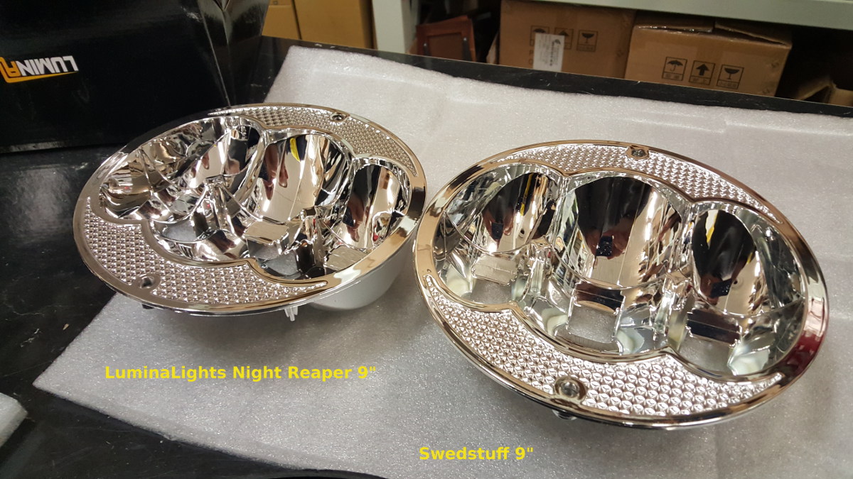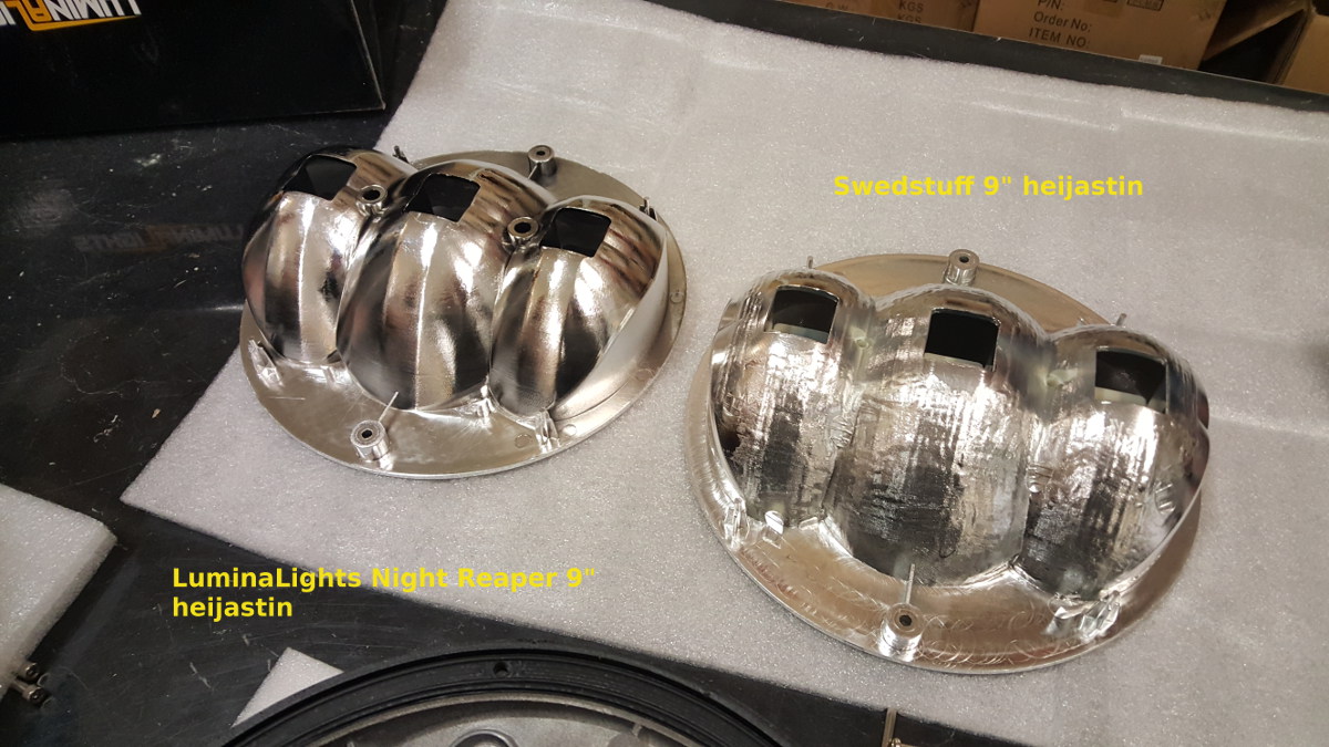 Lisävaloja tarkemmin tutkittaessa löytyi myös paljon muita eroavaisuuksia. Esim. heijastimen pinnoituksessa on suuri ero. LuminaLightsin heijastin on pinnoitettu hyvin valoa heijastavaksi, kun taas kilpailijan heijastimen pinnan laatu on huomattavasti huonompi. Tämä näkyy valotehossa todella selkeästi. Jotain valmistuslaadusta kertoo myös heijastimen taustapuoli, vaikka sillä ei olekaan käytännön merkitystä valaisutehon kannalta.