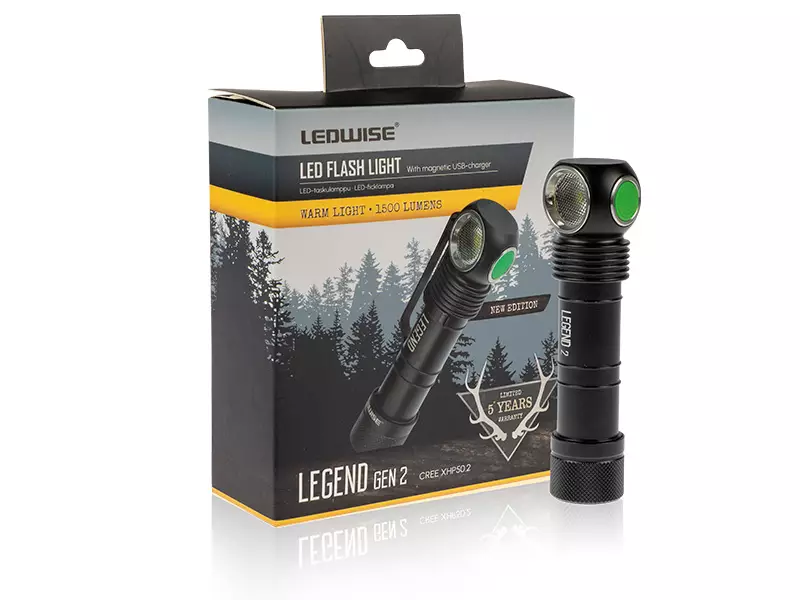 Otsalamppu Ledwise Legend 2. Monitoimivalaisin tuottaa huiman 1500 lumenin todellisen valotehon. Uudistettu Ledwise Legend 2 on erittäin kompaktin kokoinen valaisin, joka on suunniteltu jokapäiväiseen käyttöön ja on todellinen ammattilaisen työkalu. Uudistettu yksinkertainen käyttöjärjestelmä on helppo käyttää ja oikea valoteho löytyy jokaiseen käyttöön helposti. Aiempaan verrattuna 33% enemmän valotehoa pidemmällä paloajalla. 3500mAh akun huolehtiessa virran riittävyydestä. Valon lähteenä toimii Cree XHP 50.2 LED, värilämpönä 4000K. Strobo ja SOS- moodit on karsittu kokonaan pois. Valaisimen lataus on toteutettu tehokkaalla USB- magneettilataus pistokkeella, kuluvia tai irrotettavia osia ei ladattaessa ole ja lisäksi uuden laturin myötä korkkia ei tarvitse enää kääntää ladatessa. Lumiselta ostaessa takuu aina 60kk!