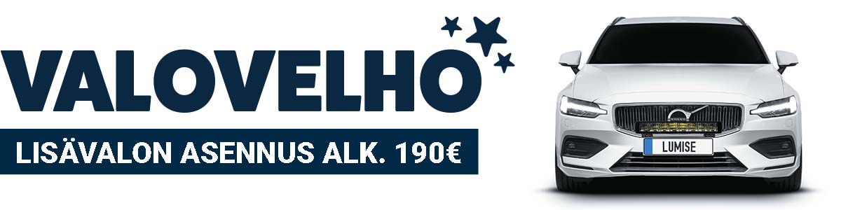 Lumisen Valovelhosta löydät juuri sinun autoosi rakennetut lisävalopaketit vaadittavilla asennustarvikkeilla! Halutessasi voit ostaa Valovelhosta lisävalot asennettuna Raskoneen toimipisteessä.