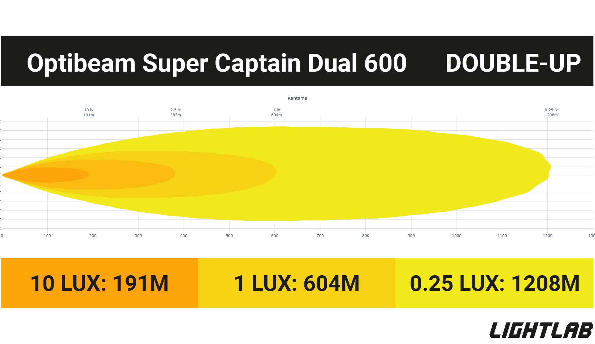 - Kantama: Tieliikennesallittu valoteho 1lux 431m ( Double-up 604m)