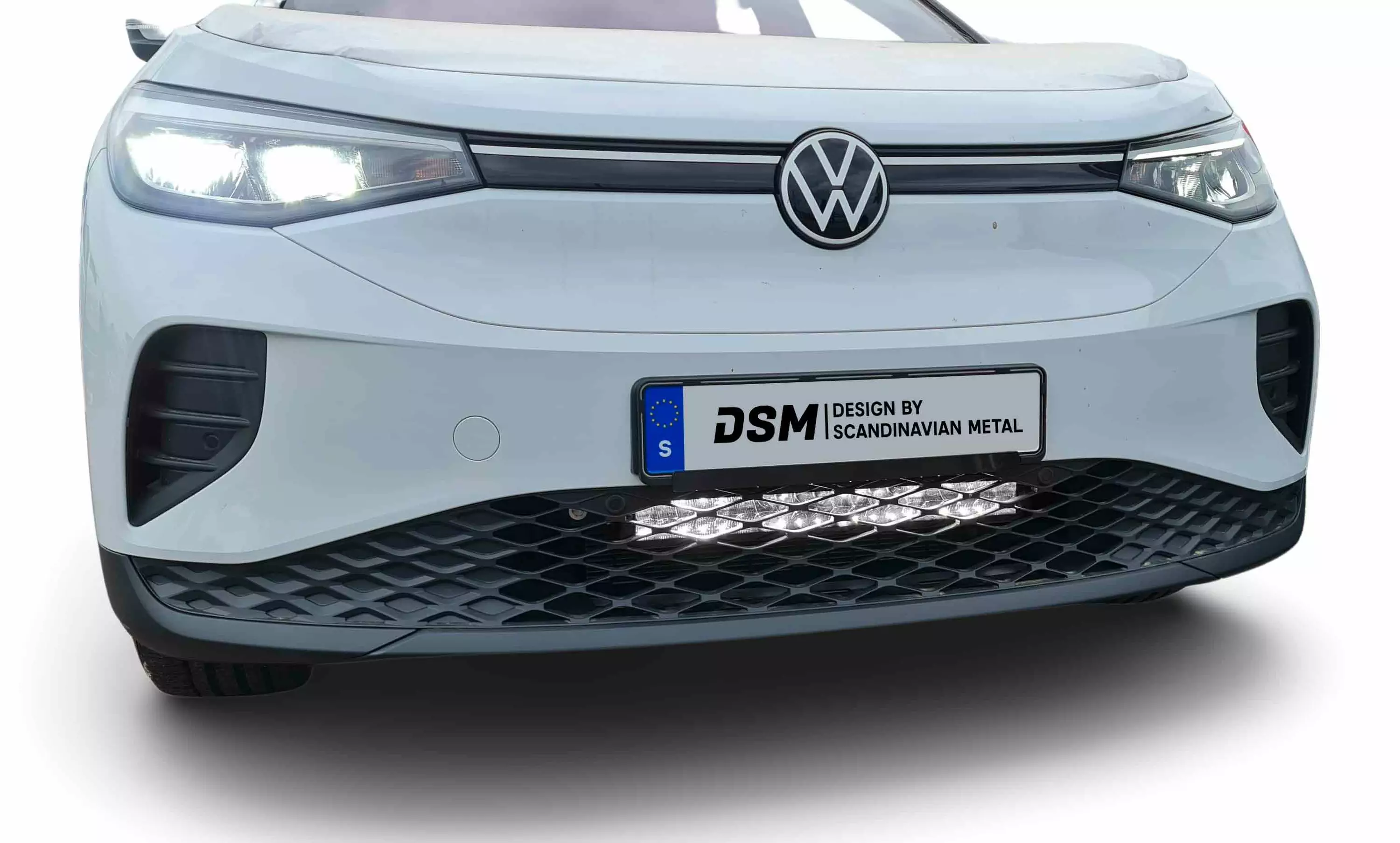 Mallikohtainen DSM lisävalopaketti Volkswagen ID.4 2021-. Mallikohtaisella asennuksella saadaan valaisin istumaan tukevasti ja tyylikkäästi autoon. Lisävalopaketin mukana toimitetaan lisävalon mallikohtainen kiinnitysohje Volkswagen ID.4-autoille rekisterikilven alapuolelle maskin taakse. Asennusohjeessa ei ole mallikohtaista ohjetta lisävalon johdotuksen kytkentään vaan se kannattaa varmistaa ennen asennusta.