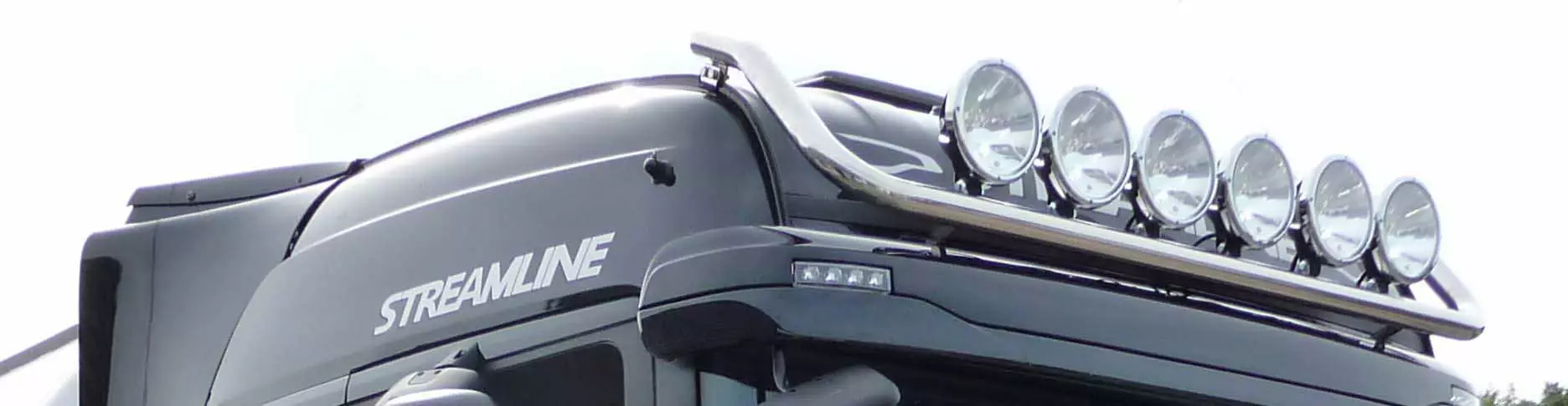 Hanki DSM Scania Highline R-sarjallesi huipputason 60 mm ruostumattomasta teräksestä valmistettu valorauta, joka sisältää kattavan kaapeloinnin ja kiinteät kiinnikkeet 5 lisävalolle.