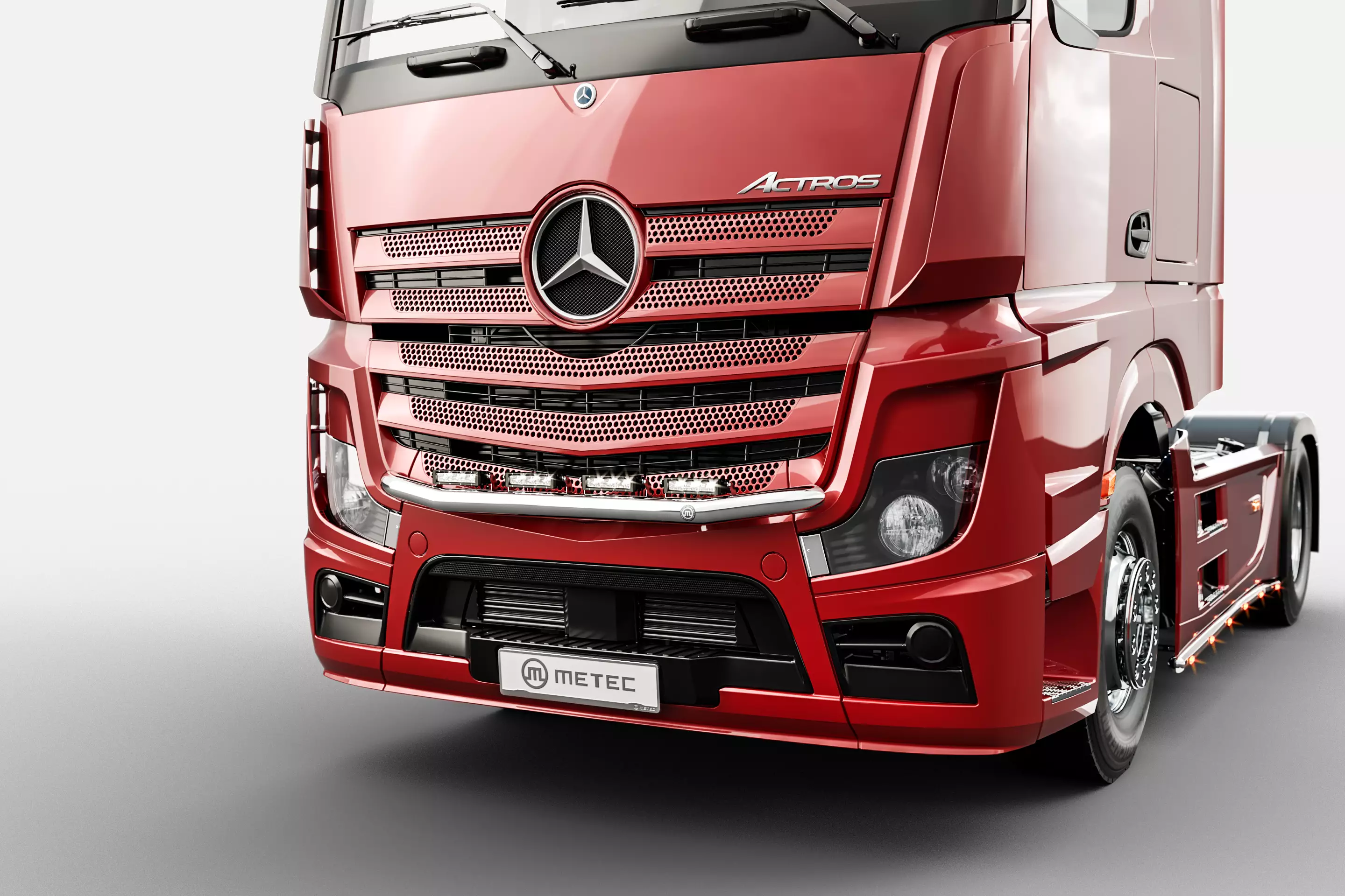 Metecin valmistama lisävaloteline. Yhteensopiva Mercebes Benz Actros 2011-2020+ kuorma-autoihin. Valmistettu ruostumattomasta teräksestä joka kiillotettu peilikirkkaaksi. Sisältää valmiit paikat sekä johdotukset neljälle lisävalolle. Erittäin laadukas Metec tuote 2 vuoden takuulla.