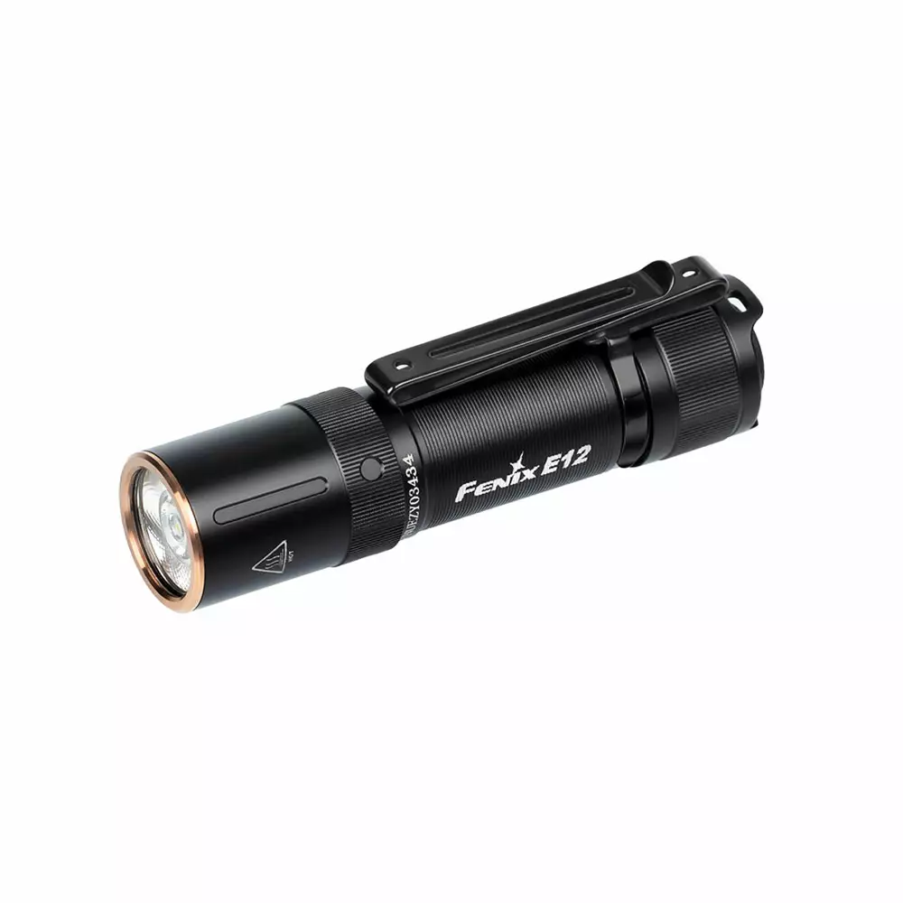 - Pakkaus sisältää: Fenix E12 V2.0 taskulamppu, AA-sormiparisto (alkaali), rannehihna, vaihdettava O-rengastiiviste, käyttöohje.