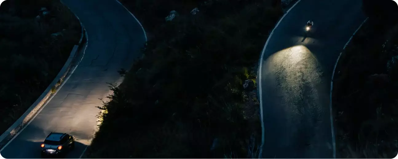 Synkronoituu saumattomasti yhteensopivien älytakavalojen ja kaukosäätimenkanssa – yhden kosketuksen hallinta liikkeellä ollessa.
