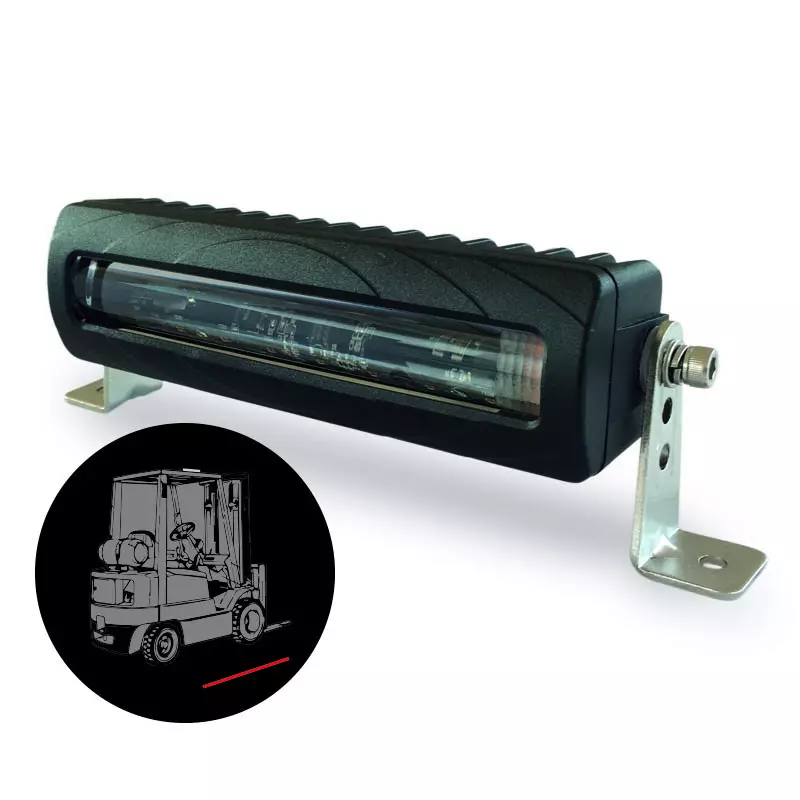 LED-Trukkivalo / varoitusvalo RedStripe, 9-110V, LuminaLights. RedStripe-varoitusvalo heijastaa punaisen raidan trukin kyljelle. Selkeämmin merkitty työskentelyalue parantaa työturvallisuutta. Valolla kahden vuoden takuu.