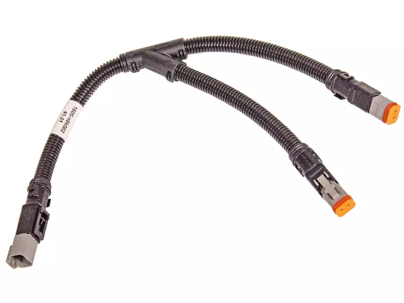2-napainen liitosjohto suojaputkella, Deutsch DT 2P Y-haara. Esim. kahdelle työvalolle, valojen max. etäisyys 320mm. Johdon pituus 360mm ennen haaraa.