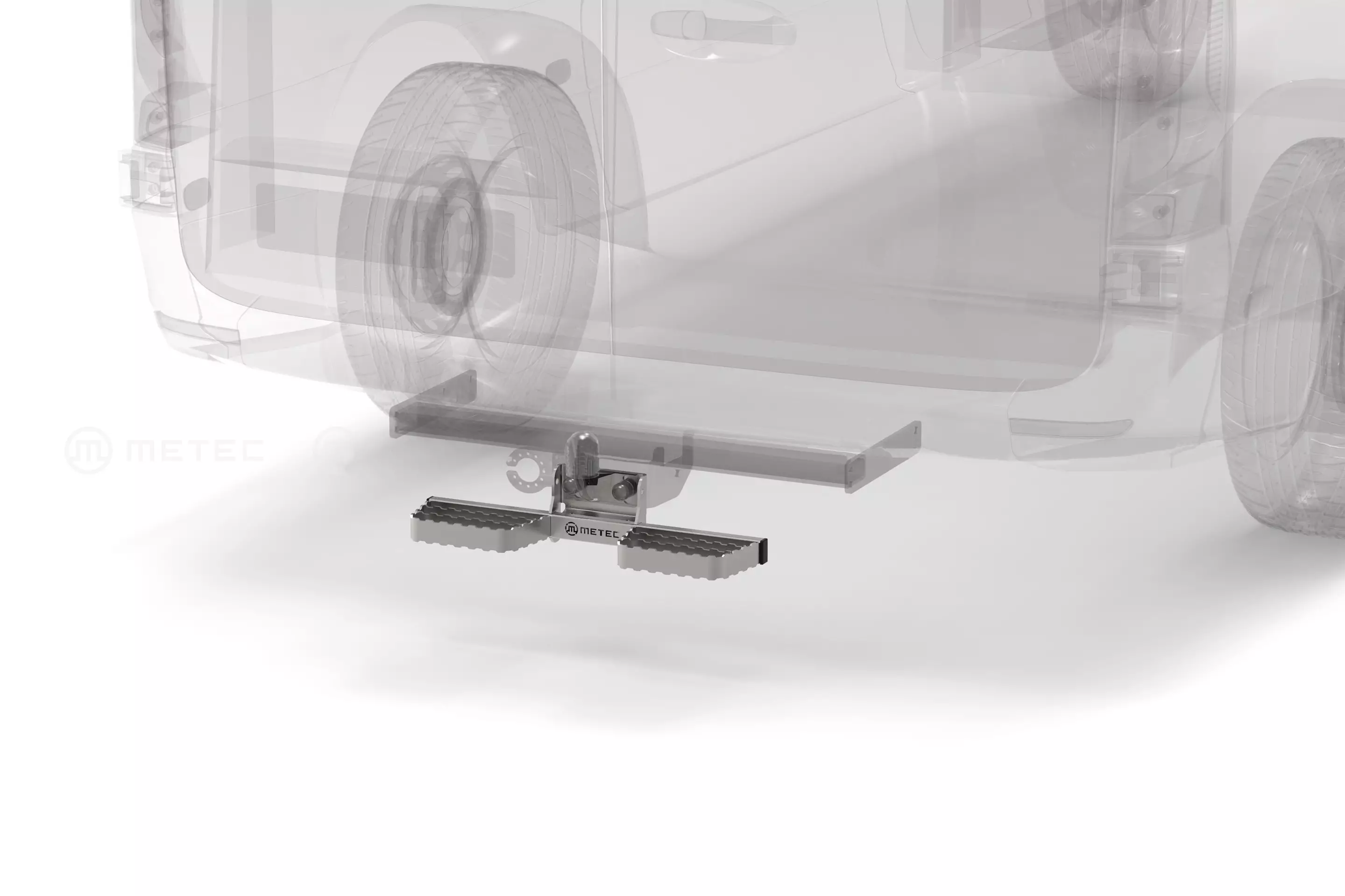 Metecin valmistama 600mm leveä astinlauta vetokoukkuun. Erittäin tukeva sekä helppo asentaa. Yhteensopiva autoihin joissa vetokoukun kiinnitysreikien väli on 90mm. Valmistettu ruostumattomasta teräksestä. Laadukas Metec tuote 2 vuoden takuulla!