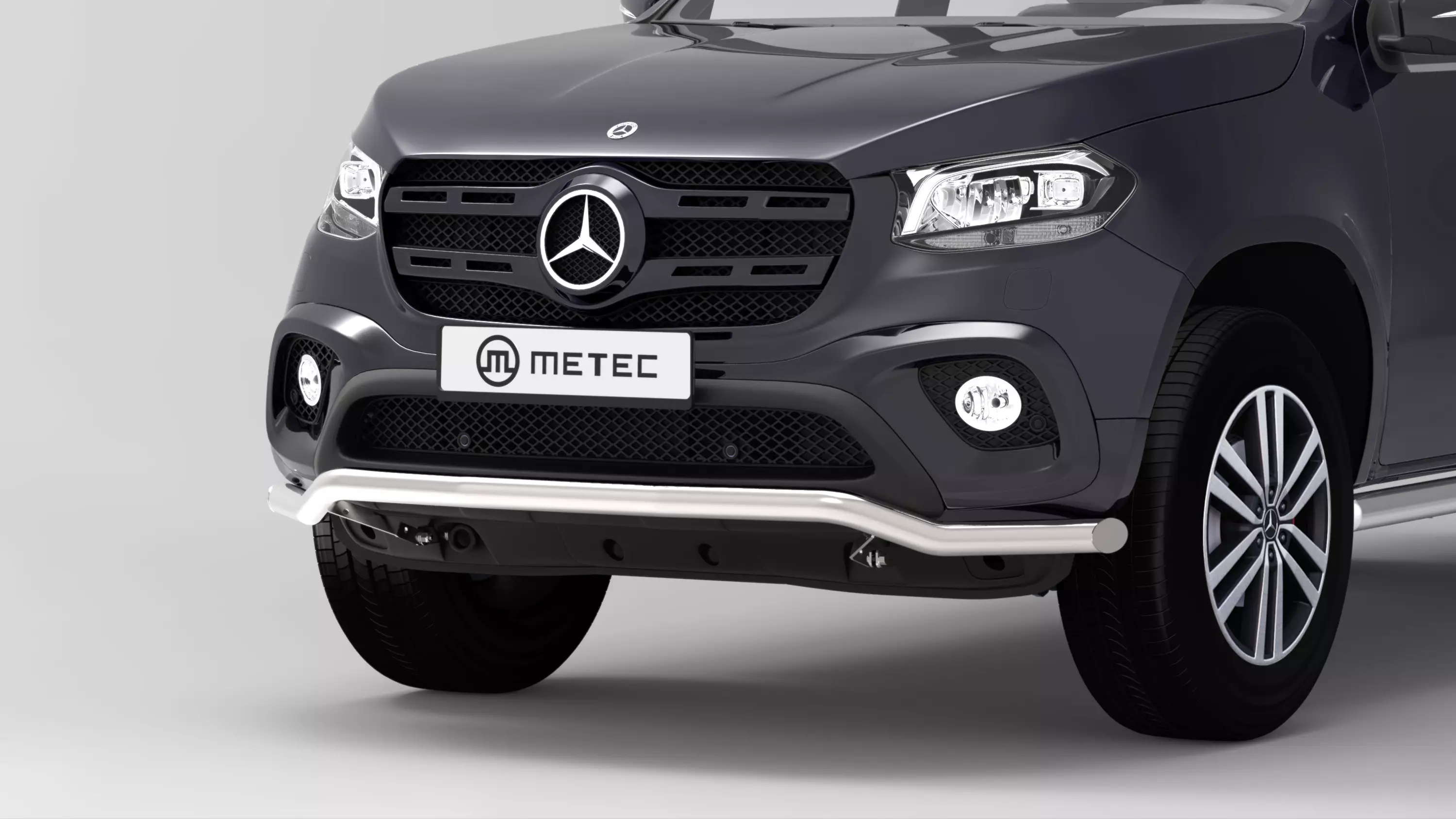 Ruostumattomasta teräksestä valmistettu etuhelmaputki Mercedes X-CLASS 2017- lava-autoihin. Pinta kiilloitettu peilikirkkaaksi.
