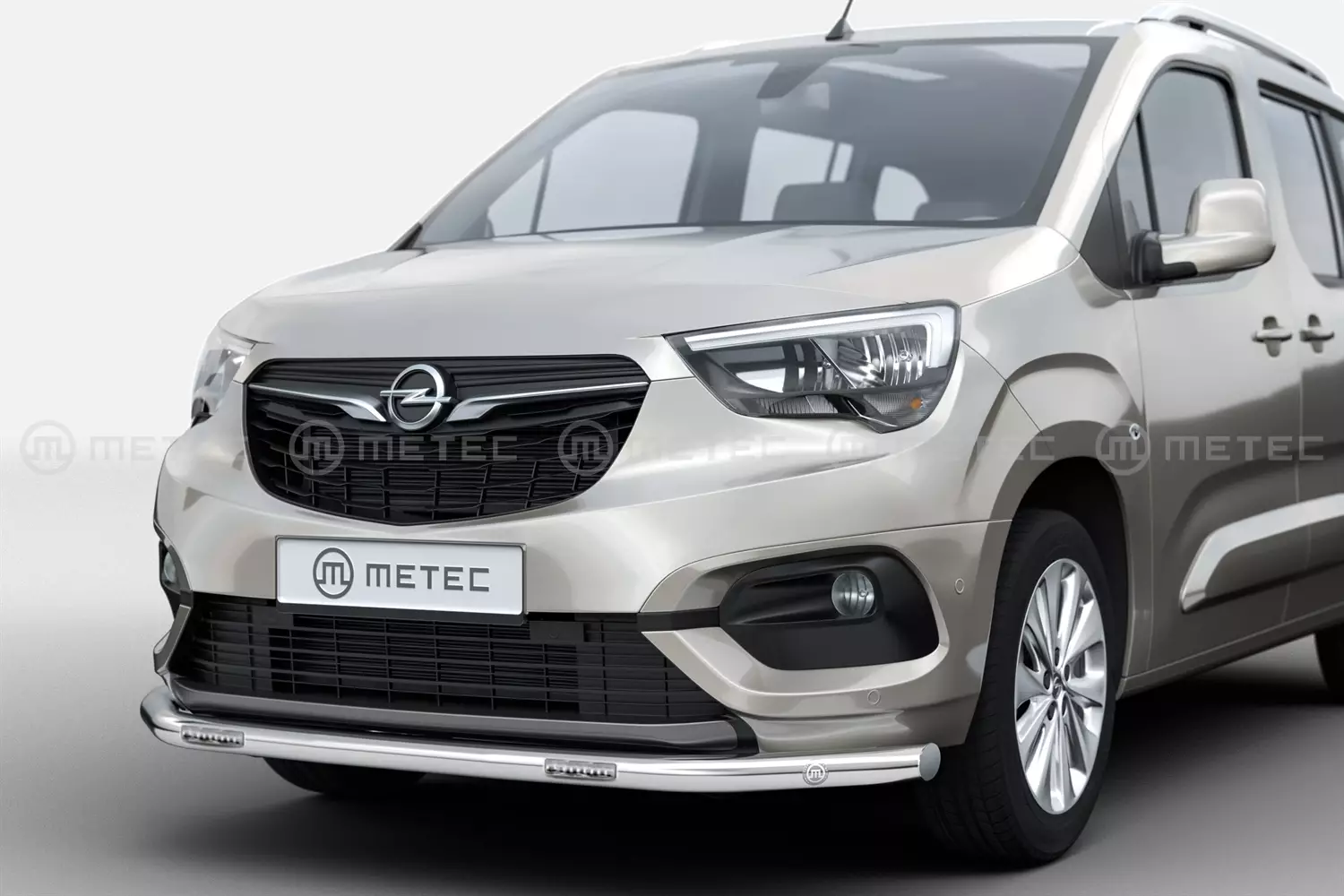 Ruostumattomasta teräksestä valmistettu LED-päiväajovaloilla varustettu etuhelmaputki Opel Combo 2018- autoihin. Pinta kiilloitettu peilikirkkaaksi.