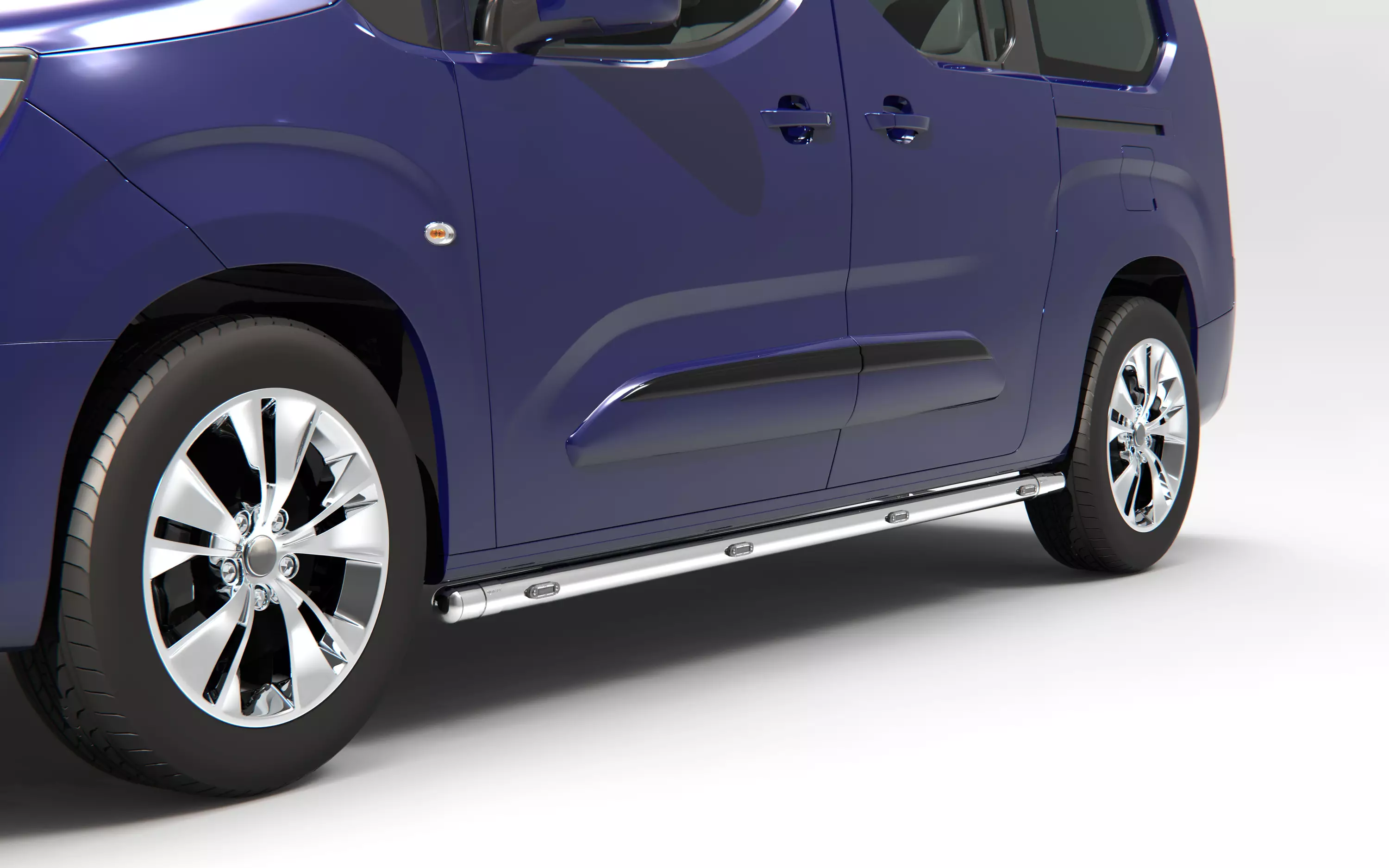 Metecin valmistamat tyylikkäät LED-äärivaloin varustetut kylkiputket Citroen Berlingo 2018- autoihin. Valmistettu ruostumattomasta teräksestä joka kiilloitettu peilikirkkaksi. Putken halkaisija 60mm.