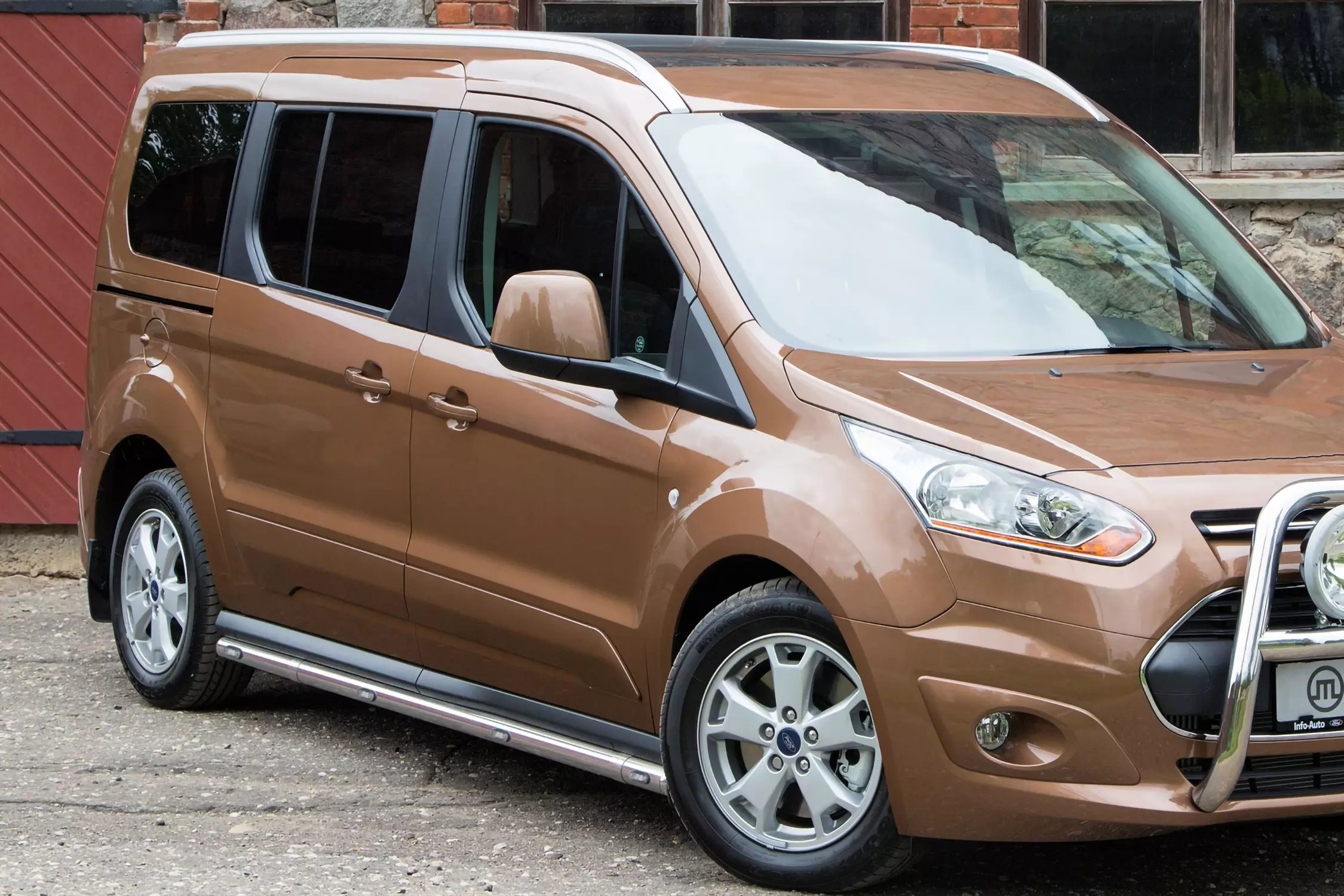 Metecin valmistamat tyylikkäät LED-äärivaloin varustetut kylkiputket Ford Connect 2014- pakettiautoihin. Valmistettu ruostumattomasta teräksestä joka kiilloitettu peilikirkkaksi. Putken halkaisija 60mm.