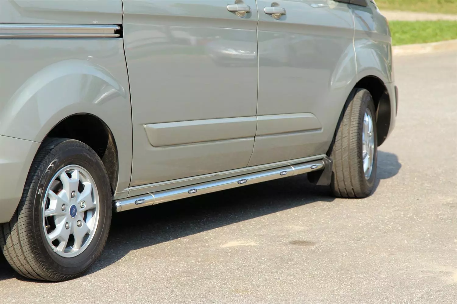 Metecin valmistamat tyylikkäät LED-äärivaloin varustetut kylkiputket Ford Transit Custom 2013- pakettiautoihin. Valmistettu ruostumattomasta teräksestä joka kiilloitettu peilikirkkaksi. Putken halkaisija 60mm.