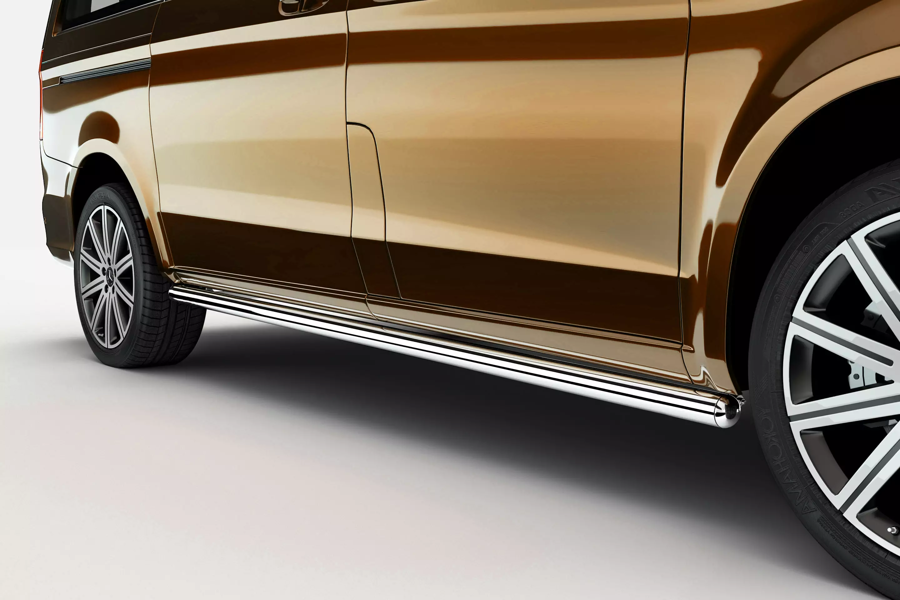 Metecin valmistamat erittäin tyylikkäät kylkiputket Mercedes Benz Vito & V-Klass 2014- pakettiautoihin. Valmistettu ruostumattomasta teräksestä joka kiilloitettu peilikirkkaksi. Putken halkaisija 60mm.