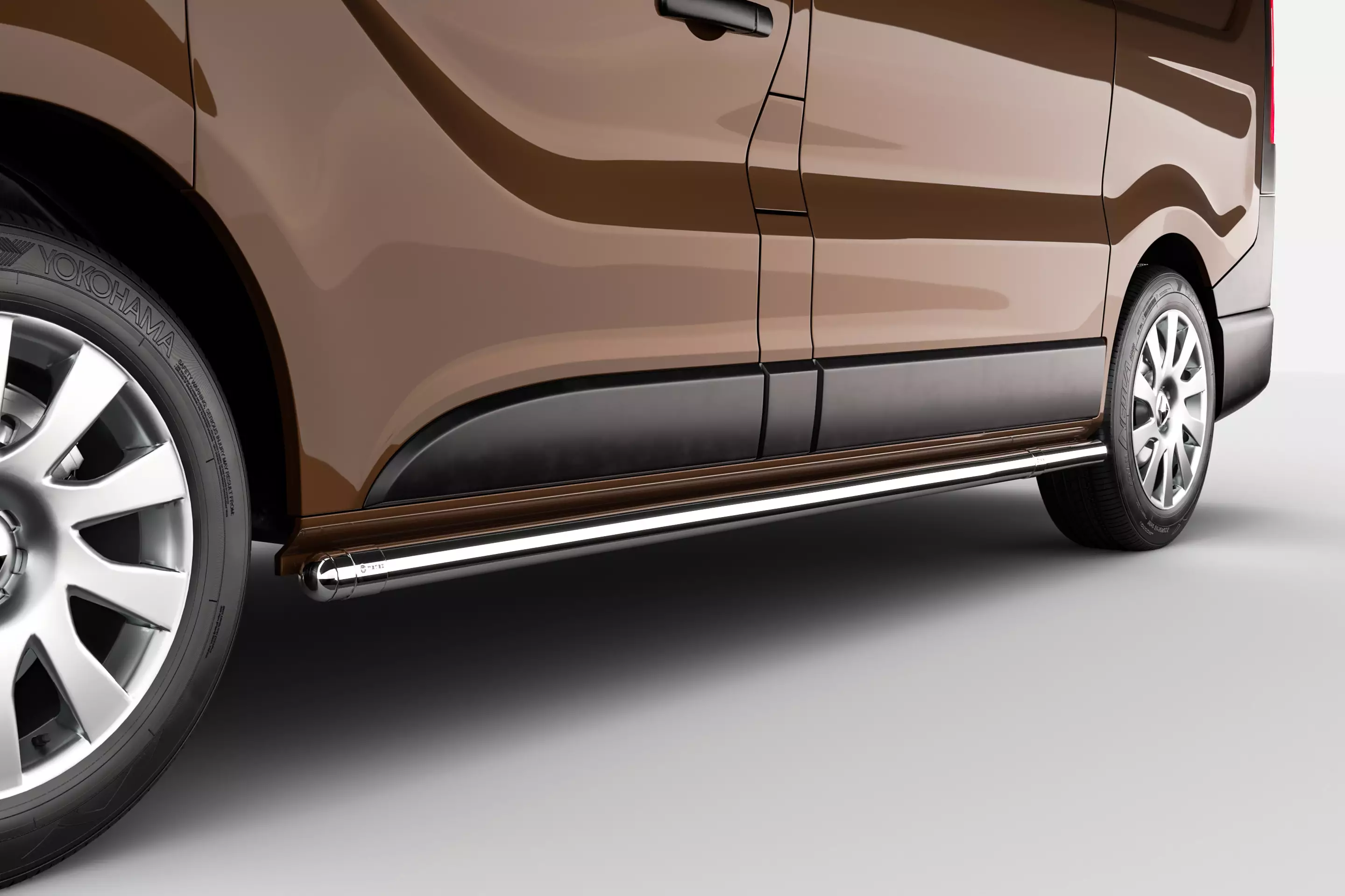 Metecin valmistamat tyylikkäät kylkiputket Nissan NV300 2015- pakettiautoihin. Valmistettu ruostumattomasta teräksestä joka kiilloitettu peilikirkkaksi. Putken halkaisija 60mm.