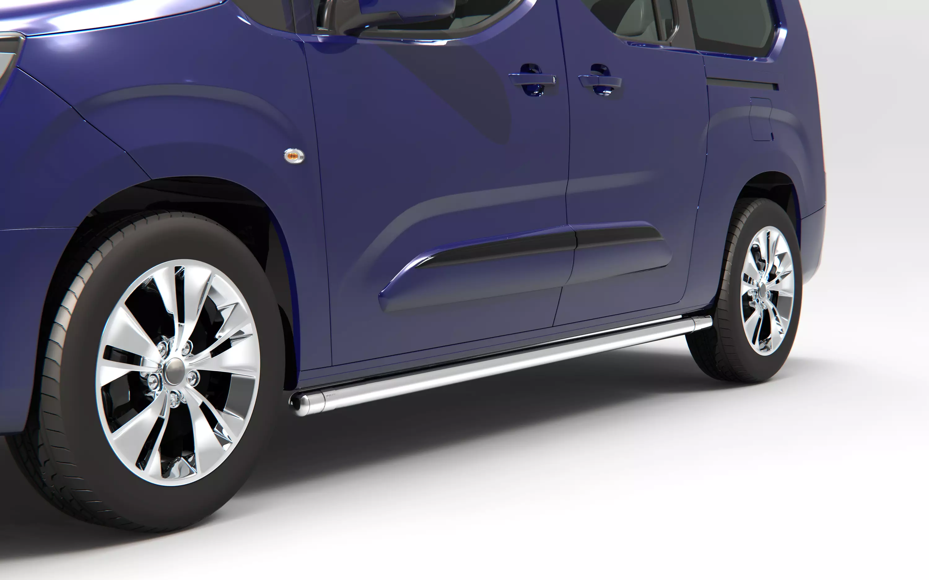 Metecin valmistamat tyylikkäät kylkiputket Opel Combo 2018- autoihin. Valmistettu ruostumattomasta teräksestä joka kiilloitettu peilikirkkaksi. Putken halkaisija 60mm.