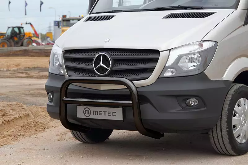 Mercedes Benz Sprinter 2013-2018 yhteensopiva EU-hyväksytty METEC valorauta. Putken halkaisija 70mm. Valmistettu ruostumattomasta teräksestä joka maalattu mustaksi.