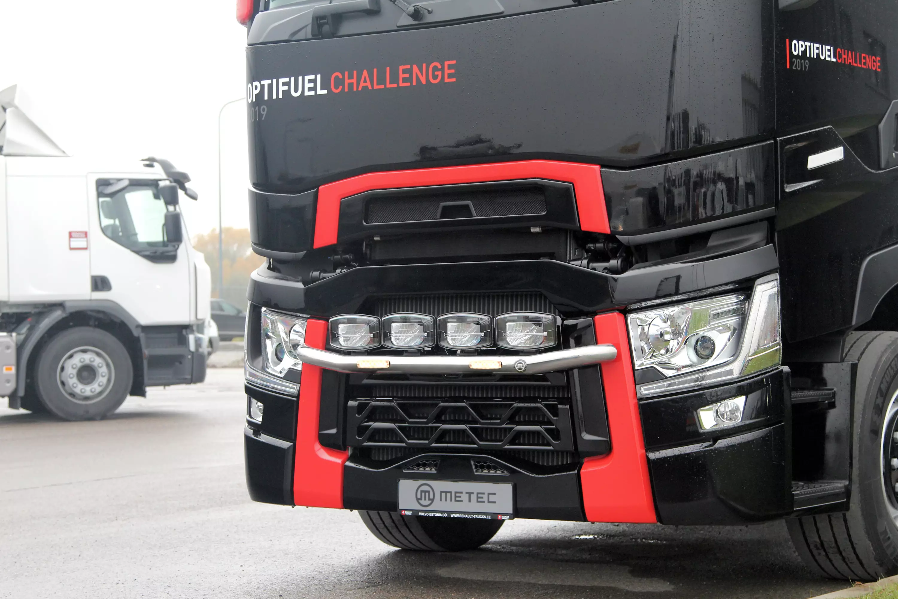 Metecin valmistama lisävaloteline integroiduilla LED-tasovilkuilla. Yhteensopiva Renault T-Serie 2014-2020+ kuorma-autoihin. Valmistettu ruostumattomasta teräksestä joka kiillotettu peilikirkkaaksi. Sisältää valmiit paikat sekä johdotukset neljälle lisävalolle. Erittäin laadukas Metec tuote 2 vuoden takuulla.
