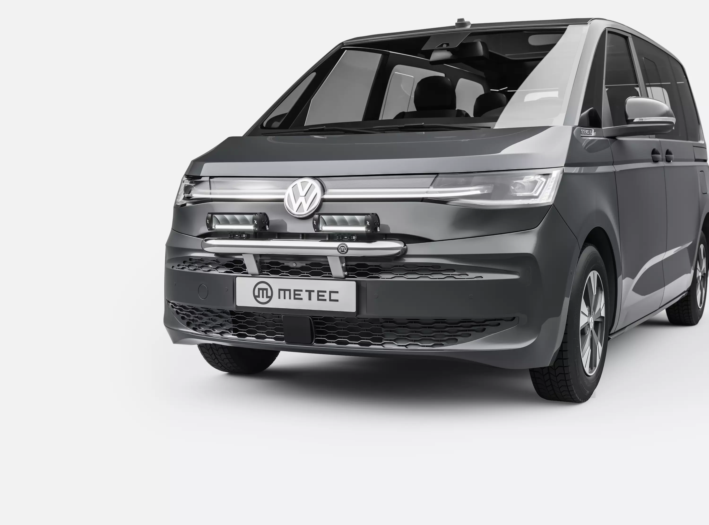 Ruostumattomasta teräksestä valmistettu lisävaloteline Volkswagen T7 2022- pakettiautoihin. Putken halkaisija 60mm. Valmiit paikat kolmelle lisävalolle. Suunniteltu mallikohtaisesti, joten istuvuus on 100%.