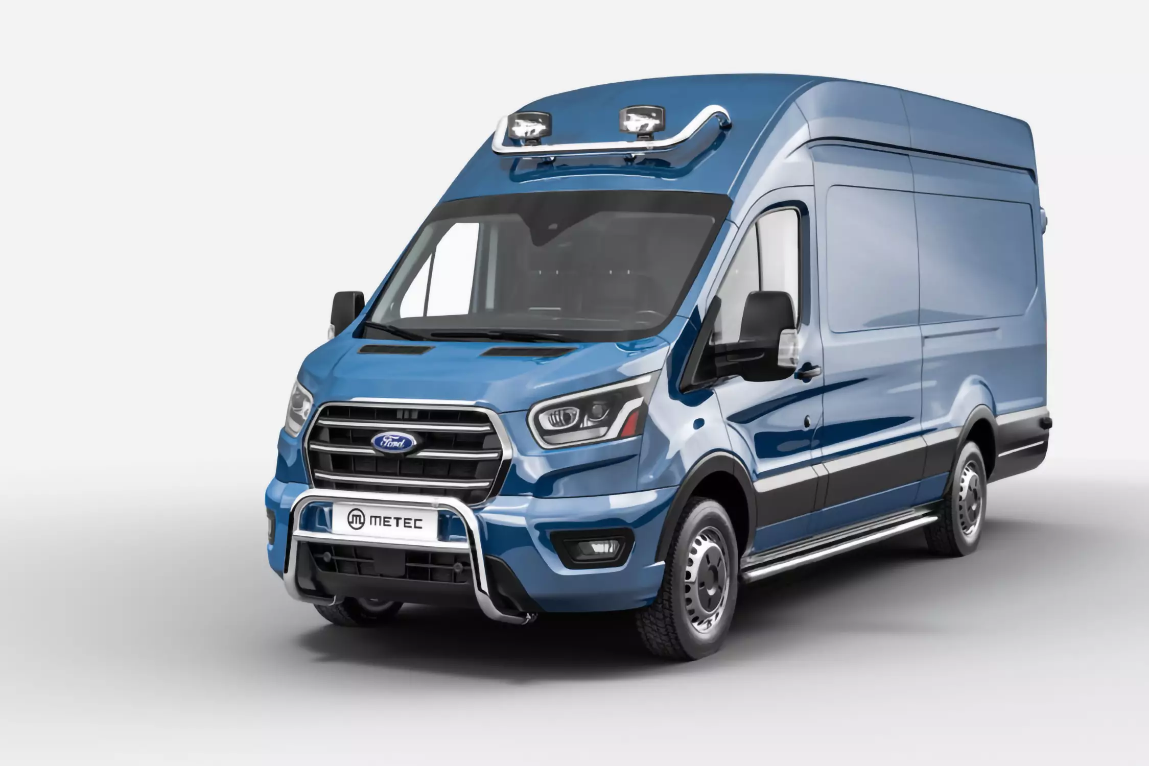 Valmiiksi räätälöity varustepaketti Ford Transit 2019- pakettiautoihin. Paketti sisältää Metecin valmistamat kylkiputket, työvalorauta, valorauta katolle eteen sekä EU-hyväksytty valorauta keulaan.