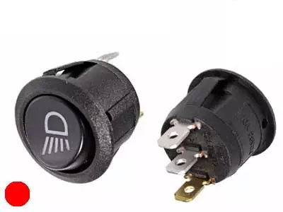 Keinukytkin, on-off, työvalo symbolilla Tekniset tiedot: • Käyttöjännite 12-24V • Lattaliittimet 3x 4,7mm • Asennusreikä ø20mm • Punainen led-merkkivalo