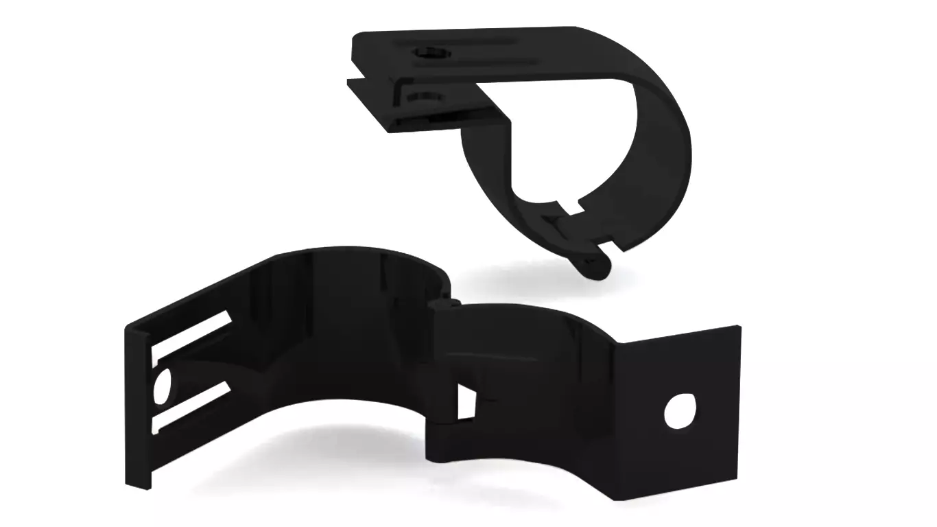Metecin valmistama mustaksi pulverimaalattu lisävalon kiinnityspanta. Valmistusmateriaali ruostumaton teräs.