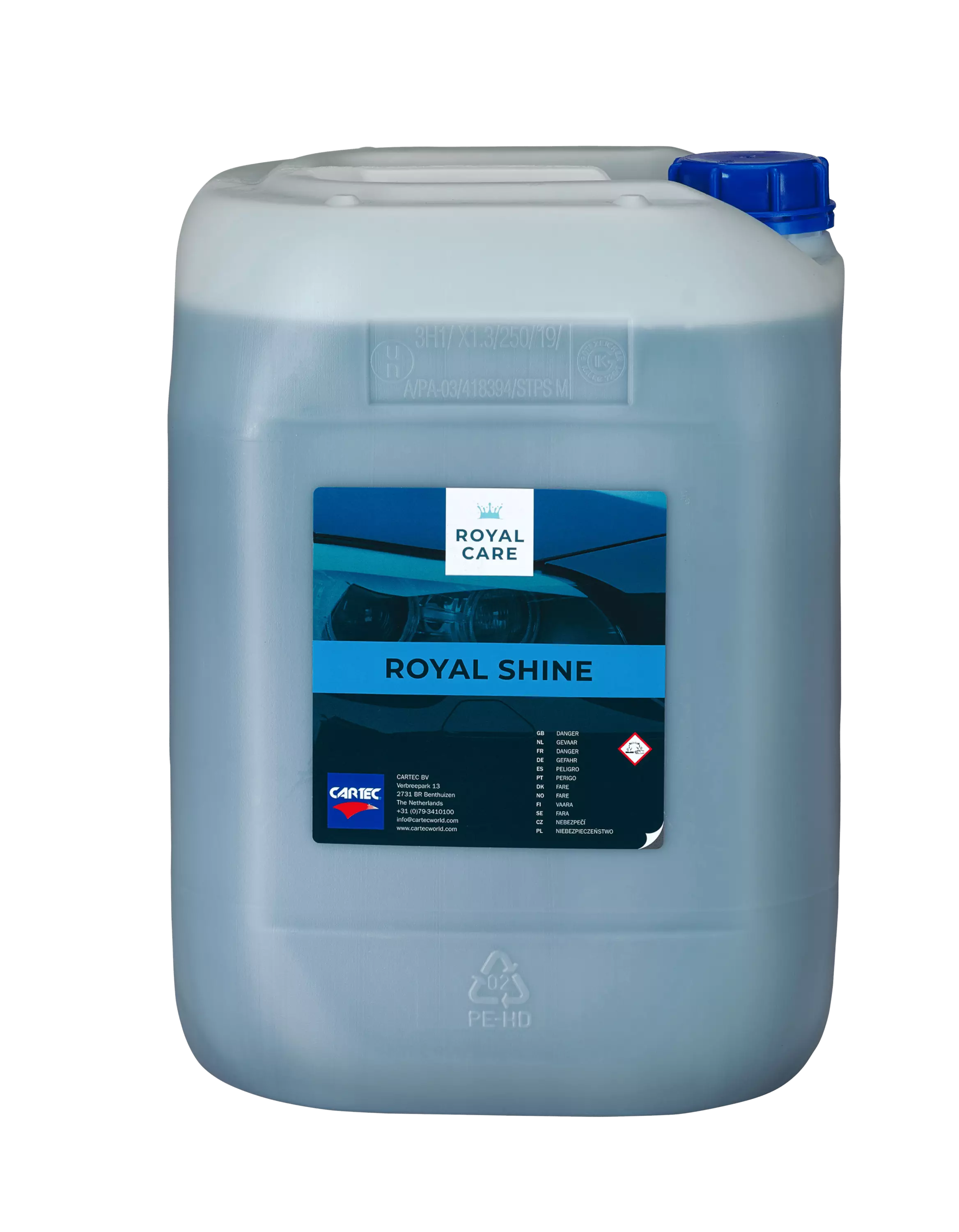 Cartec Royal Shine on erittäin tehokas kiilto- ja kuivausaine. Se soveltuu sekä autonpesukoneisiin että käsinpesuun, Royal Foamin ja Royal Cleanin käytön jälkeen Royal Shine muodostaa nopeasti vesikalvon. Yhdessä Royal Foamin ja Royal Cleanin kanssa Royal Shine takaa optimaaliset kuivaustulokset. Royal Shine jättää myös syvän kiillon ja minimoi värjäytymisen.