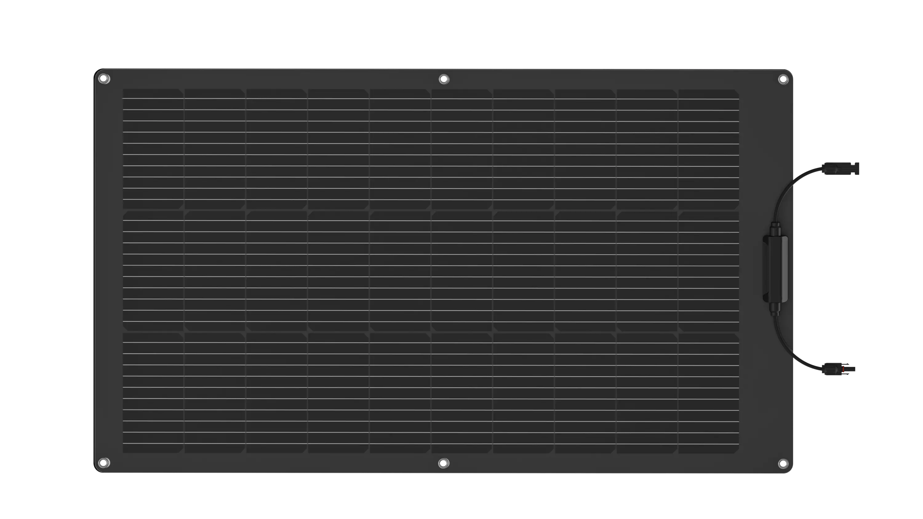 Erittäin kevyt EcoFlow 100W aurinkopaneeli joka on suuninteltu erityten asennettavaksi kaareville pinnoille.