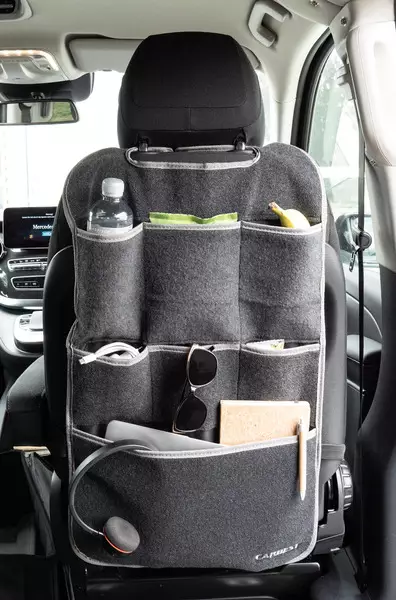 Tämä käytännöllinen huopaorganisoija sopii kuljettajan tai matkustajan istuimen taakse. Se kiinnitetään käsinojiin ja istuimen alle koukuilla, ja siinä on suuri tasku esimerkiksi kannettavalle tietokoneelle.