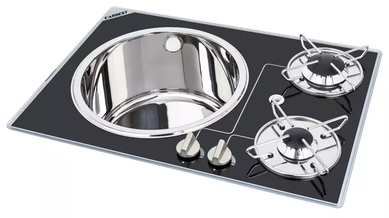 Liesi-/allas yhdistelmä – 2 poltinta turvalasilla (allas vasemmalla) Carbest liesi- ja pesuallasyhdistelmä kahdella polttimella ja kiiltävällä ruostumattomasta teräksestä valmistetulla... Lue lisää