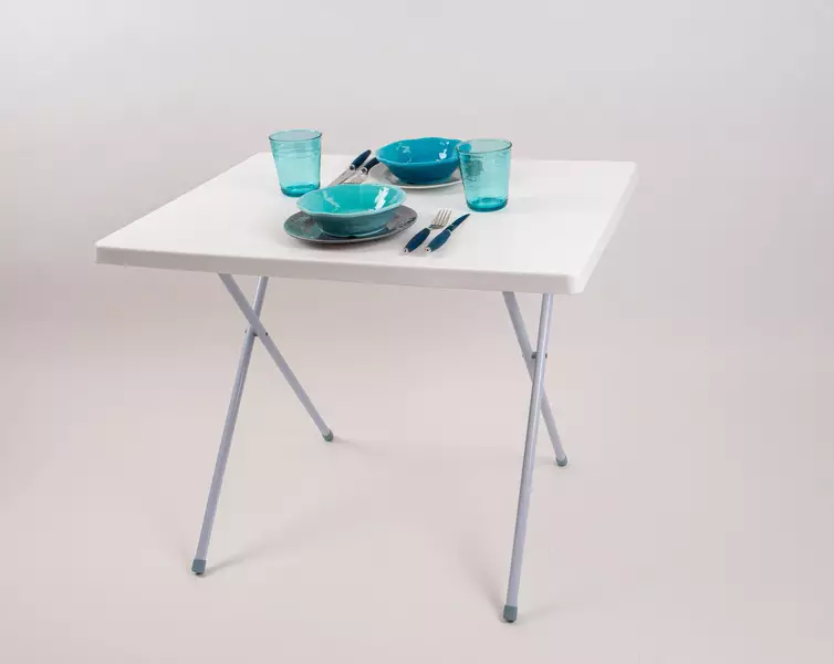 Käytännöllinen ja kevyt retkipöytä kahdella korkeudella.