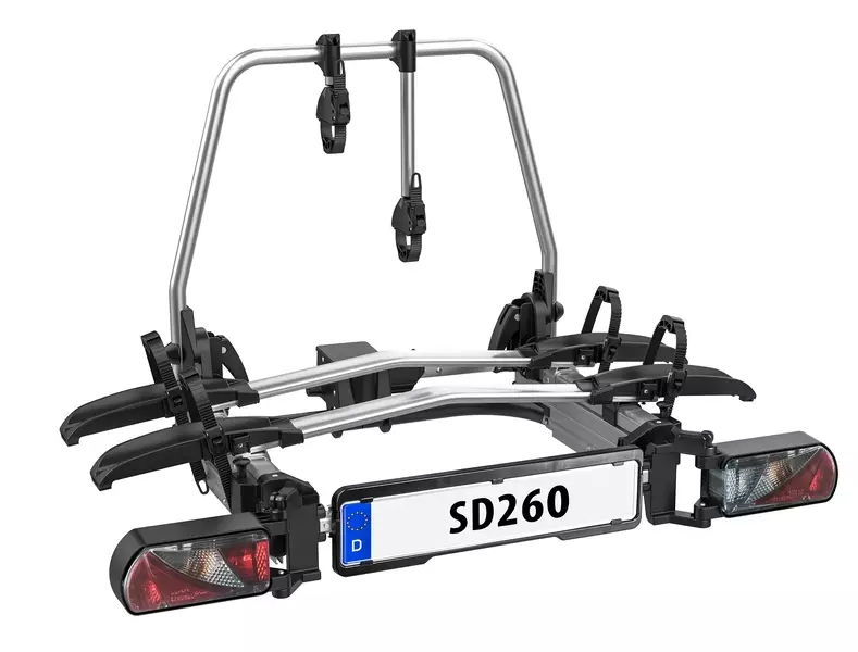 SD260 on tehokas ratkaisu kahden polkupyörän tai sähköpyörän kuljettamiseen vetokoukussa – erityisesti matkailuautoihin, pakettiautoihin ja korkeakattoisiin ajoneuvoihin.