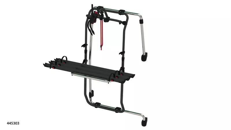 Raskaaseen käyttöön suunniteltu pyöräteline Volkswagen Crafter 2017–malliin jaettavilla takaovilla. Mahdollistaa 2–3 pyörän kuljetuksen ja tarjoaa säädettävät kiinnityskohdat tukevassa teräsrungossa.