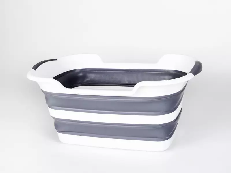 Monikäyttöinen allas tai kori, jossa on sisäänrakennettu tyhjennys. Kaksi kantokahvaa helpottavat siirtämistä ja säilytystä.
