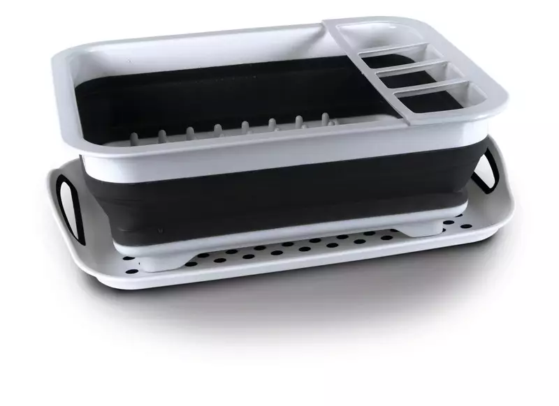 Taittuva ja tilaa säästävä astiankuivausteline aterimille, lautasille, mukeille ja kulhoille.